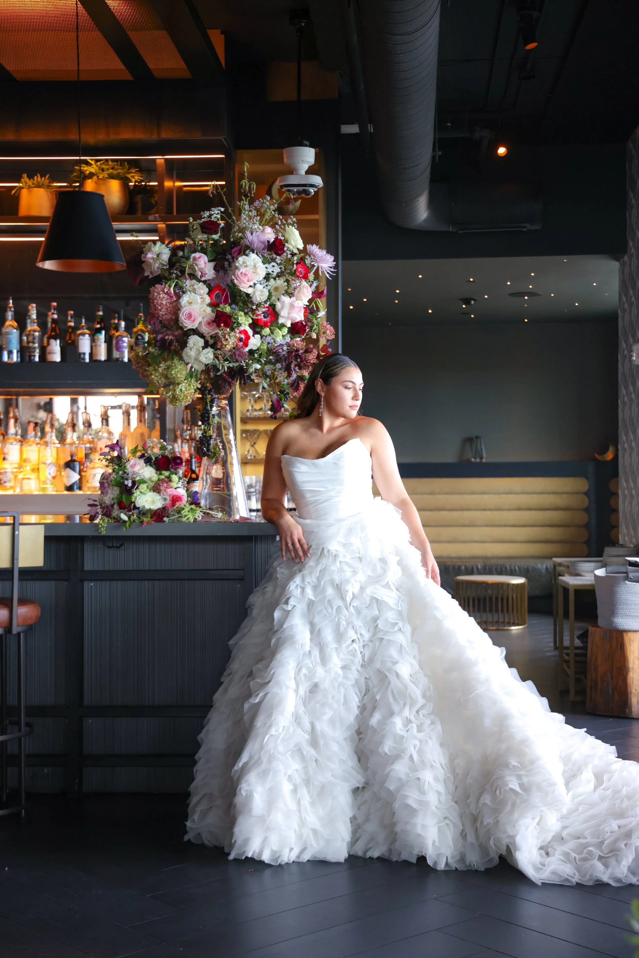 A stunning editorial bridal collaboration at the Canopy Hotel and The Luna Rooftop Bar in Portland Maine.